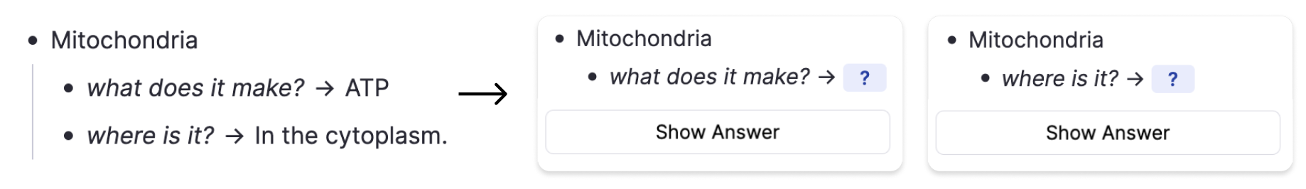 RemNote 还需要一些新类型的卡片来适应其基于大纲的特性: