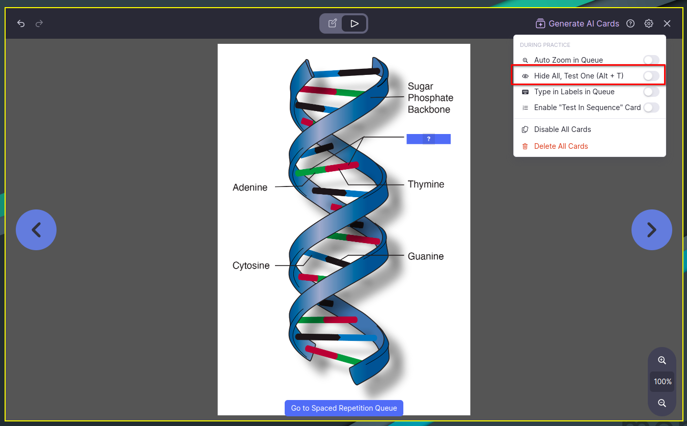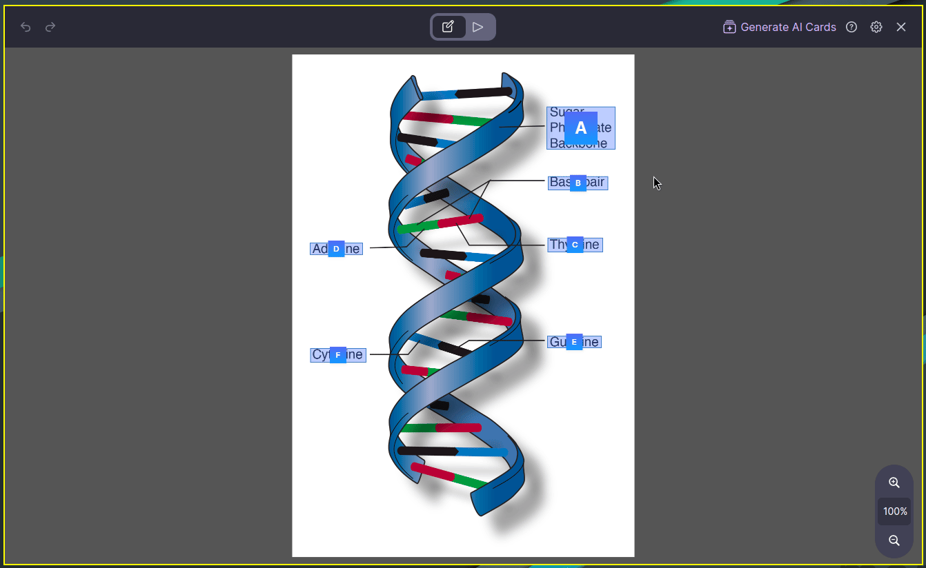 如果你想隐藏图表中的所有标签,RemNote 可以尝试自动为你创建遮蔽——点击右上角工具栏上的“使用 AI 生成卡片”按钮。