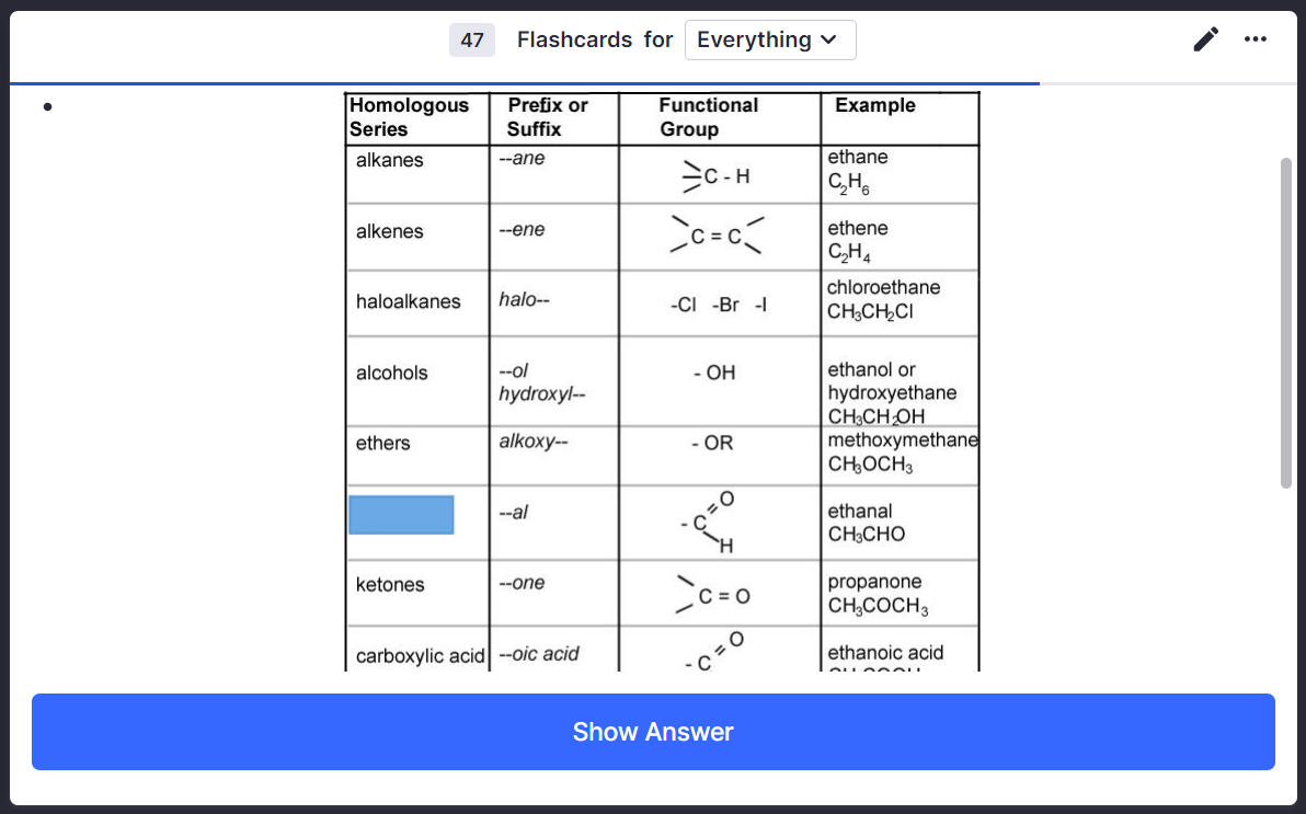 图像遮蔽卡片也是测试自己对教科书或网站上表格内容的一种快速方法:截取表格的屏幕截图,将其粘贴到 RemNote 中,然后生成图像遮蔽卡片。