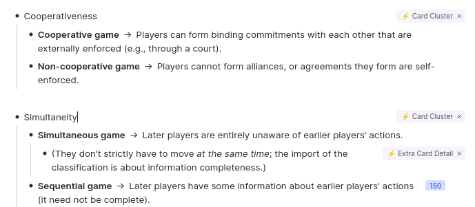 然而,许多你可能希望一起练习的内容并不符合这种模式。例如,考虑这些关于博弈论中游戏类型的卡片: