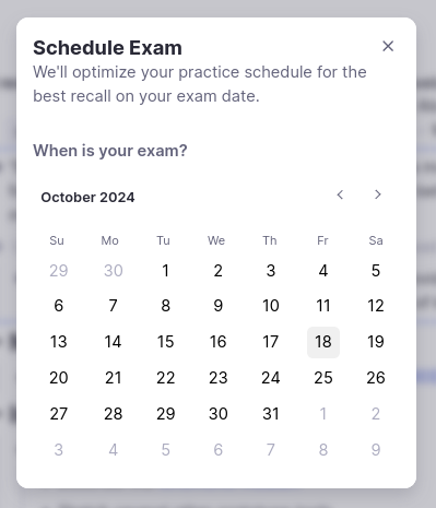- 即将到来的重要考试:对于本周或下周的考试,或者你真正想要内化的内容,选择今日开始。你将能够看到你的练习计划,我们会让你按计划进行,确保在考试日期前达到精通。