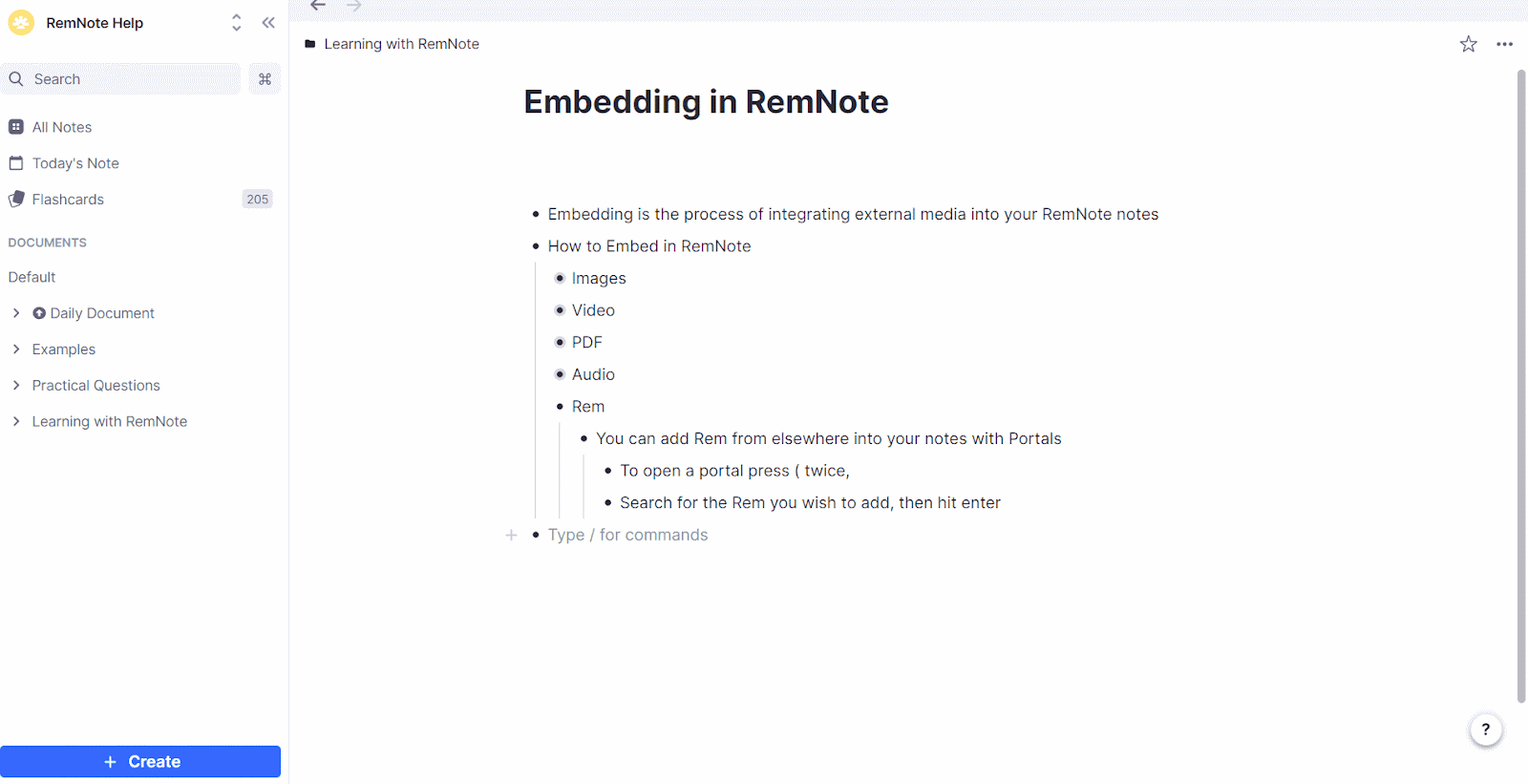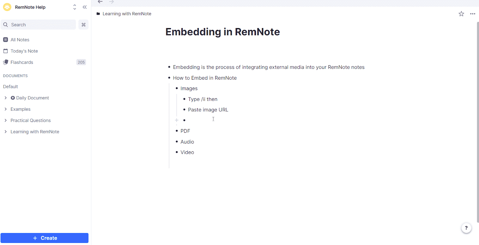 你可以在 RemNote 文档中嵌入图片、视频、音频、PDF 以及其他 Rem。