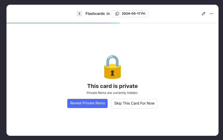当源自超级私密 Rem 生成的记忆卡片需要进行复习,且当前超级私密 Rem 处于隐藏状态时,你将看到以下卡片: