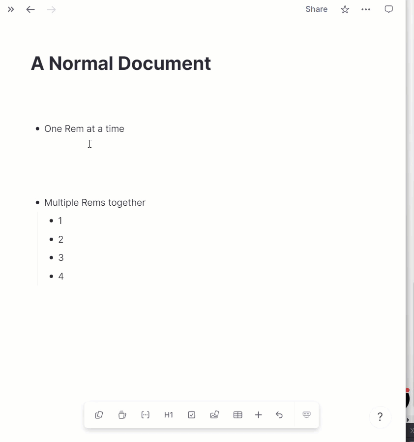 - 请注意! 带有项目符号的 Rem 不会缩进到没有项目符号的 Rem 下方,即使是标题也是如此(详见下文)。