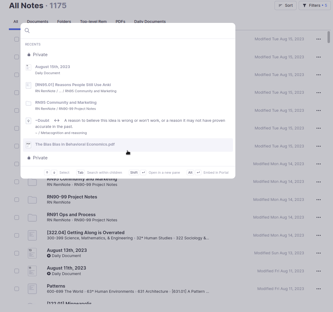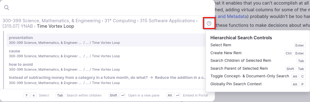 4. 你可以输入另一个搜索查询;这将与非层级搜索的工作方式相同,但只会查找当前上下文内的 Rems。如果你愿意,也可以对这些结果使用 Tab 键!