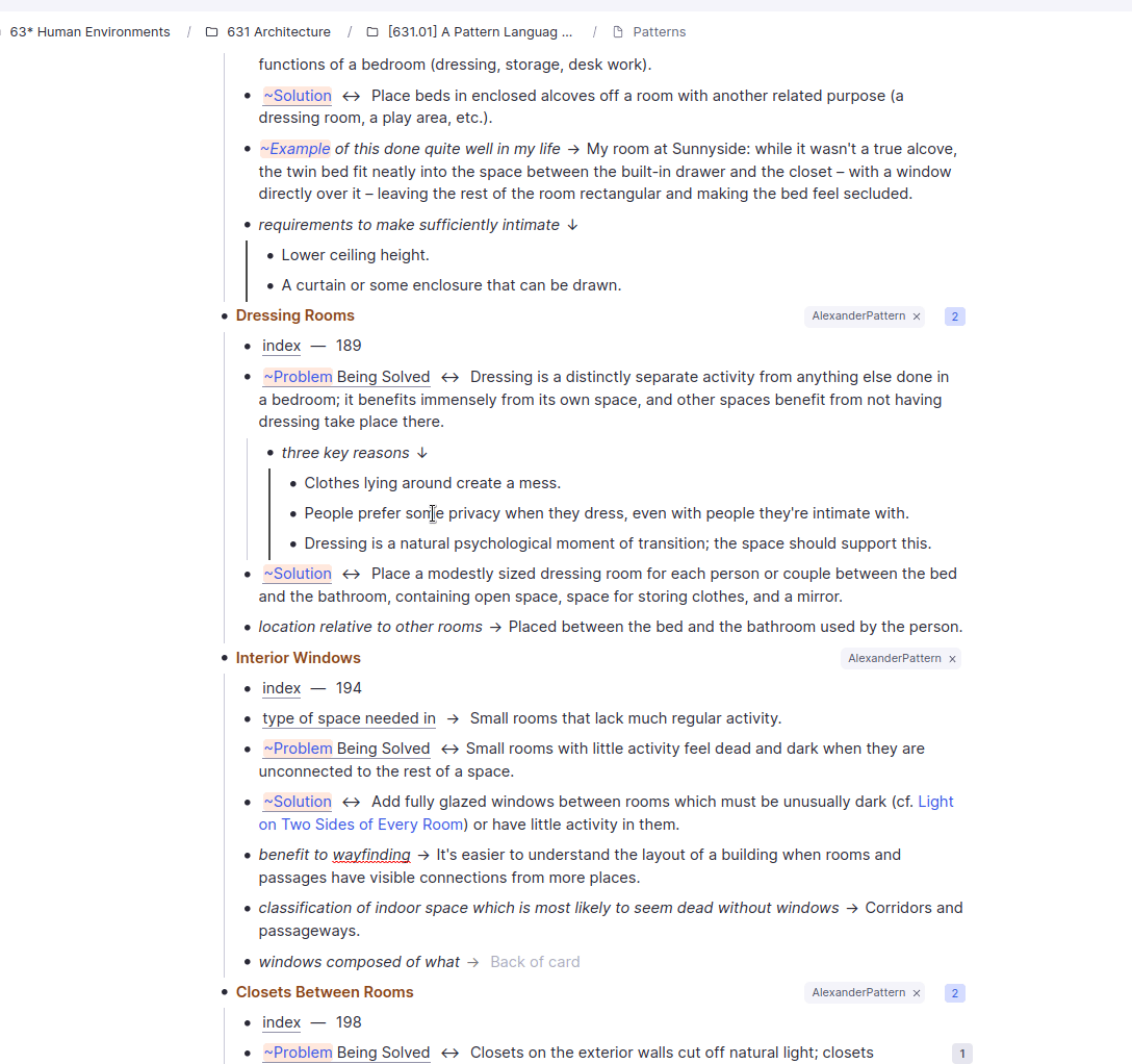同样,这在引用、传送门和标签搜索中也有效!这里我们正在学习 Christopher Alexander 的《A Pattern Language》,其中一个模式引用了我们尚未添加到 RemNote 知识库中的另一个模式 Small Panes。我们可以通过选择适当的上下文,然后输入 Small Panes 并按 Ctrl+Enter,在当前文档中创建这个对 Small Panes 的引用,以便稍后填写: