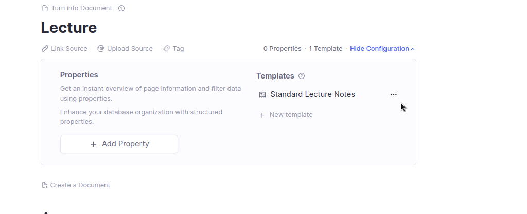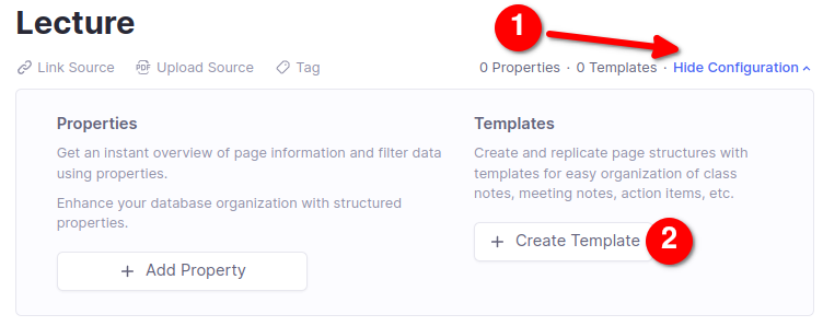 让我们看一些例子。一旦您创建了一个标签(无论是在标签页面上,还是通过使用 ## 标签搜索将其应用到某个 Rem),您就可以通过聚焦到该标签并在标签配置部分选择创建模板按钮来为其添加模板(您可能需要点击显示/隐藏配置切换按钮来展开此部分)。