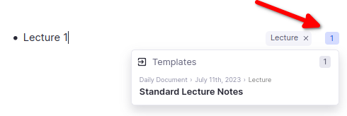 当您将某个标签应用到一些 Rem 上,并且该标签上有一些可用的属性或模板但尚未在此 Rem 上使用时,Rem 的右侧会出现一个蓝色指示器。点击此处可添加模板或属性。