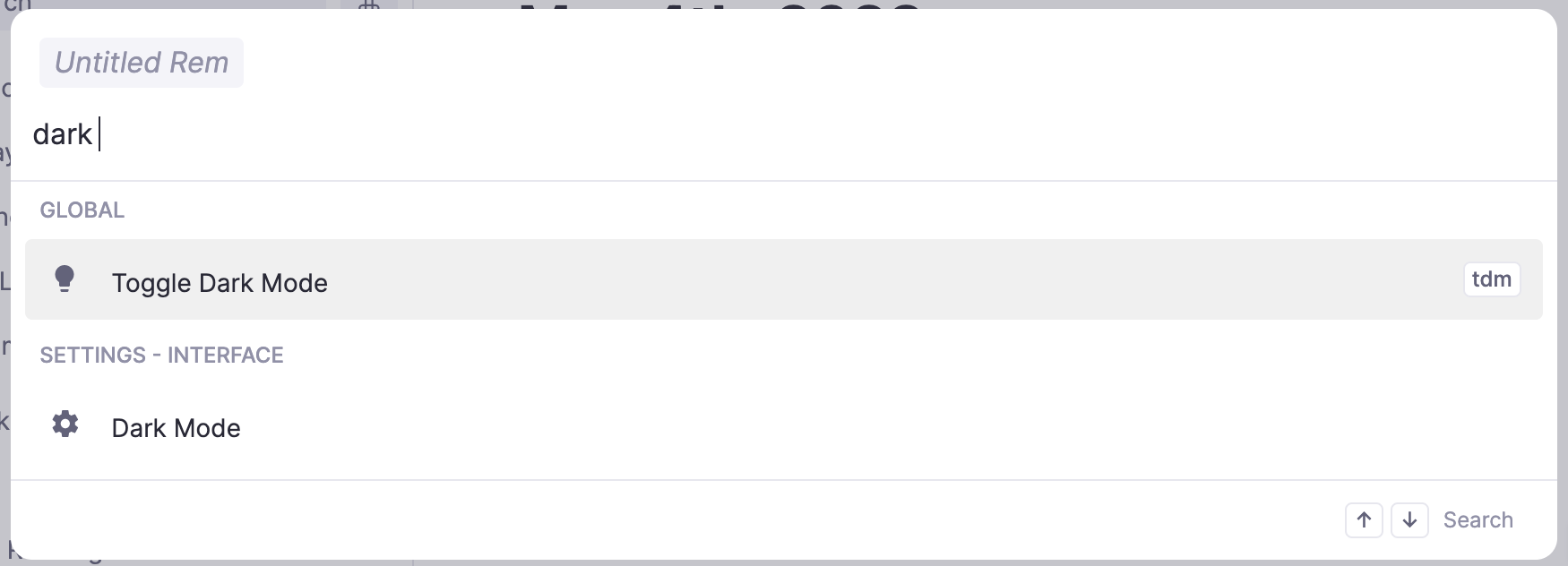 如果你在光线较暗的环境中记笔记,或者通常更喜欢深色主题,可以通过在设置 > 界面中选择相应选项,将 RemNote 的界面显示为暗黑模式: