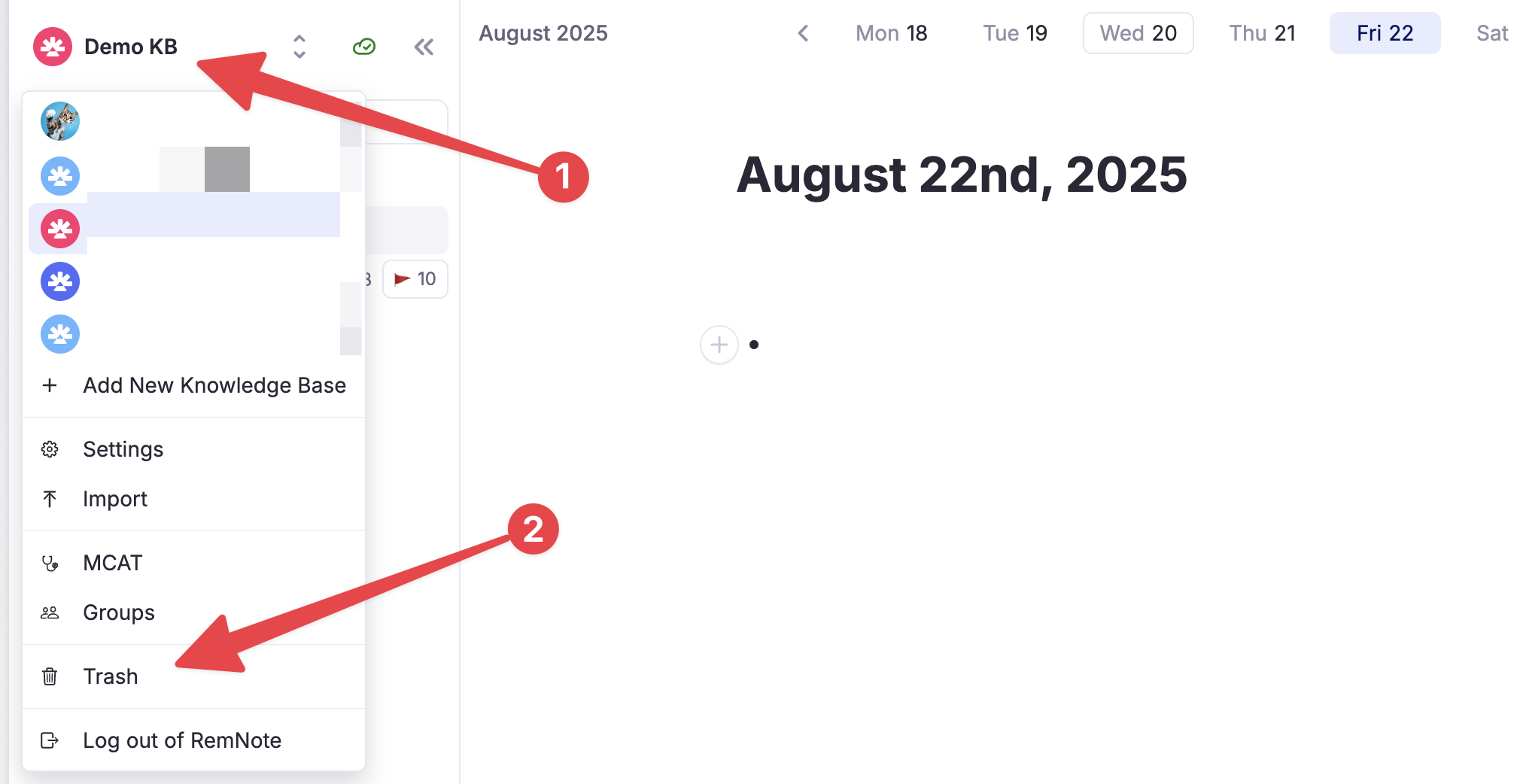 被删除的 Rem 会被放入回收站,你可以通过以下任一方式访问回收站: