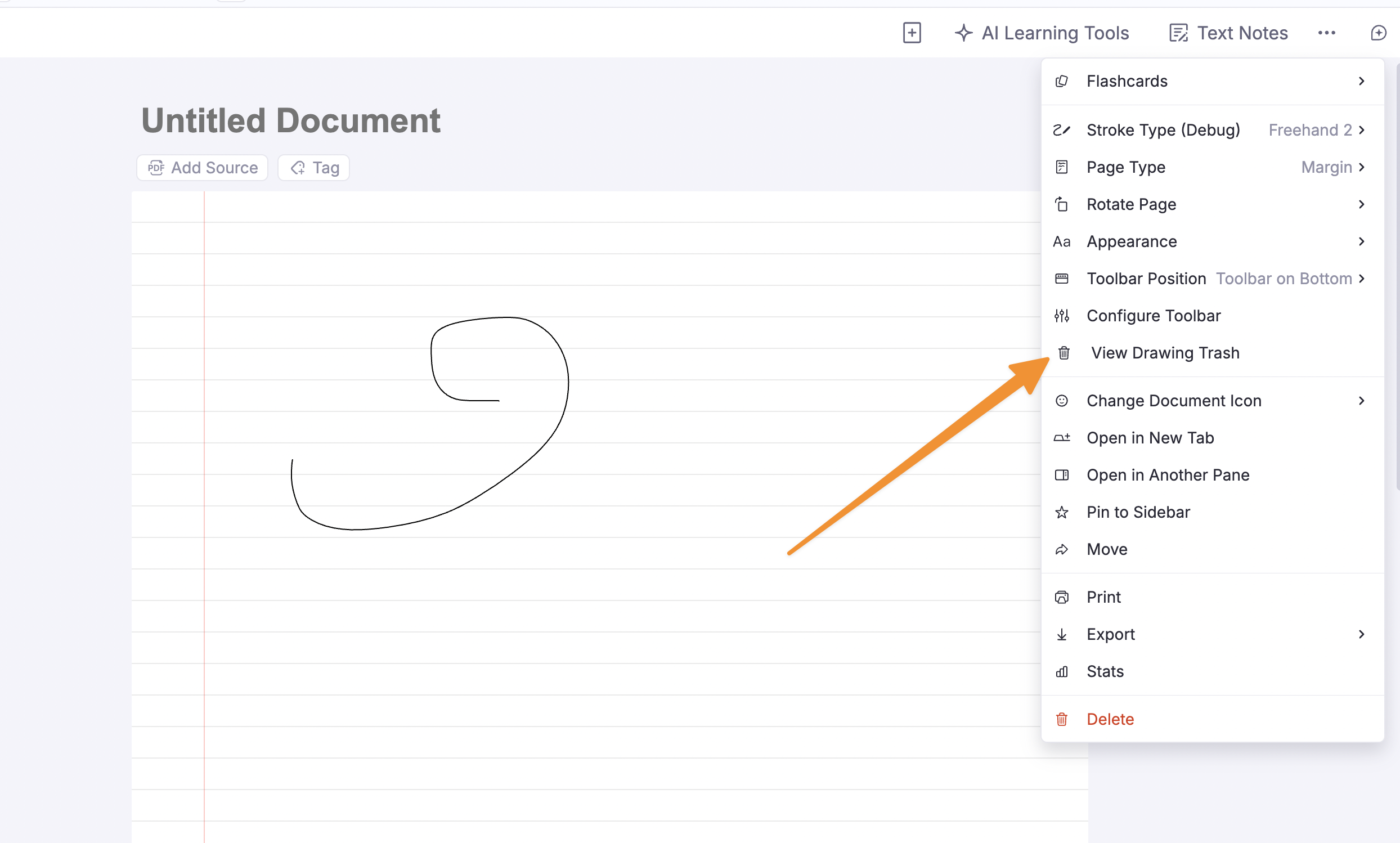 从绘图回收站恢复笔划(手写文档和 PDF)
