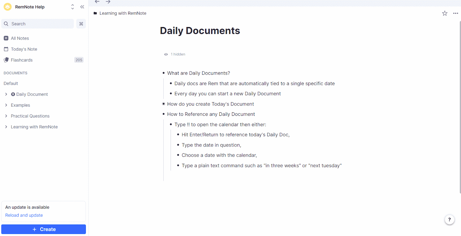你还可以通过输入 !! 快速向今日笔记添加 Rem 引用。由于 RemNote 会为这些引用添加反向链接,你将能够在今日笔记的页面上看到所有提及特定日期的地方。