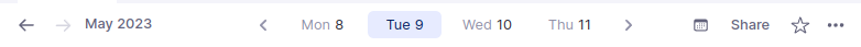 在任何今日笔记页面内:在每个今日笔记的顶部,工具栏会包含一个部分,显示已打开的今日笔记前后紧邻的日期。稍靠右一点是一个日历图标;点击这里可以快速选择任何日期。